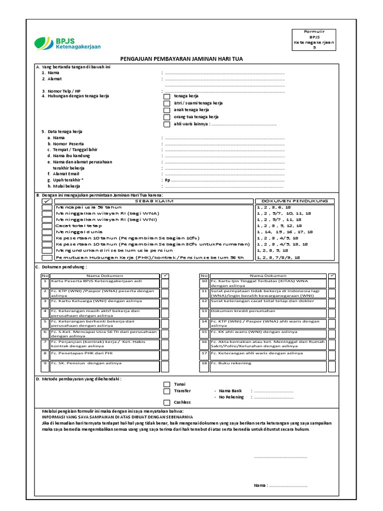 F5 Pengajuan Pembayaran Jaminan Hari Tua Formulir Bpjs Ketenagakerjaan Yang Studocu