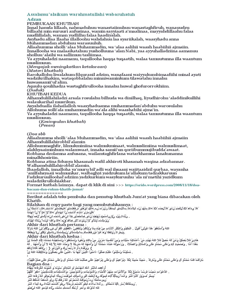 Contoh khutbah jumat lengkap dengan doa latin dan terjemahannya halo sobat bloggedewek apakabarnya semuanya.